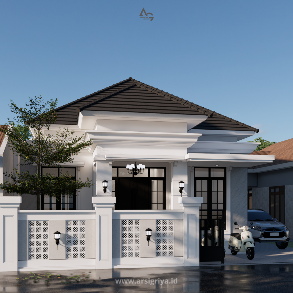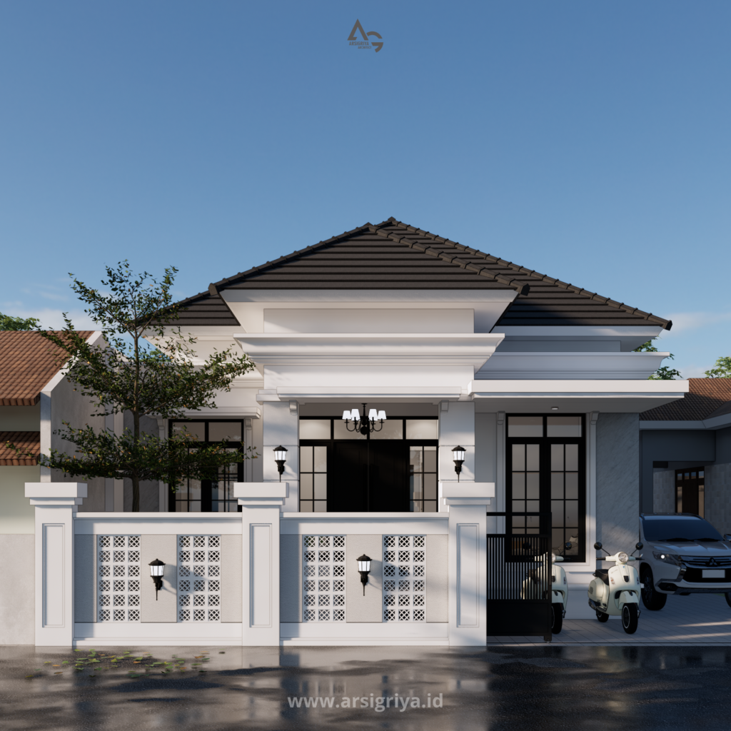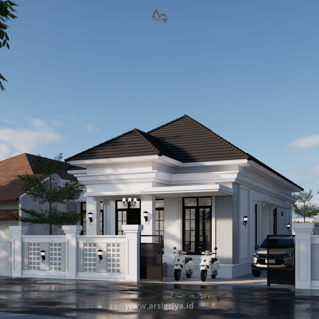 Pada kesempatan kali ini Arsigriya mendapatkan project desain rumah tinggal 1 lantai berkonsep modern klasik yang berlokasi di Bantul, D. I. Yogyakarta. Rumah ini direncanakan akan dibangun pada lahan kosong berukuran 9m x 18m dengan orientasi rumah menghadap ke Timur.