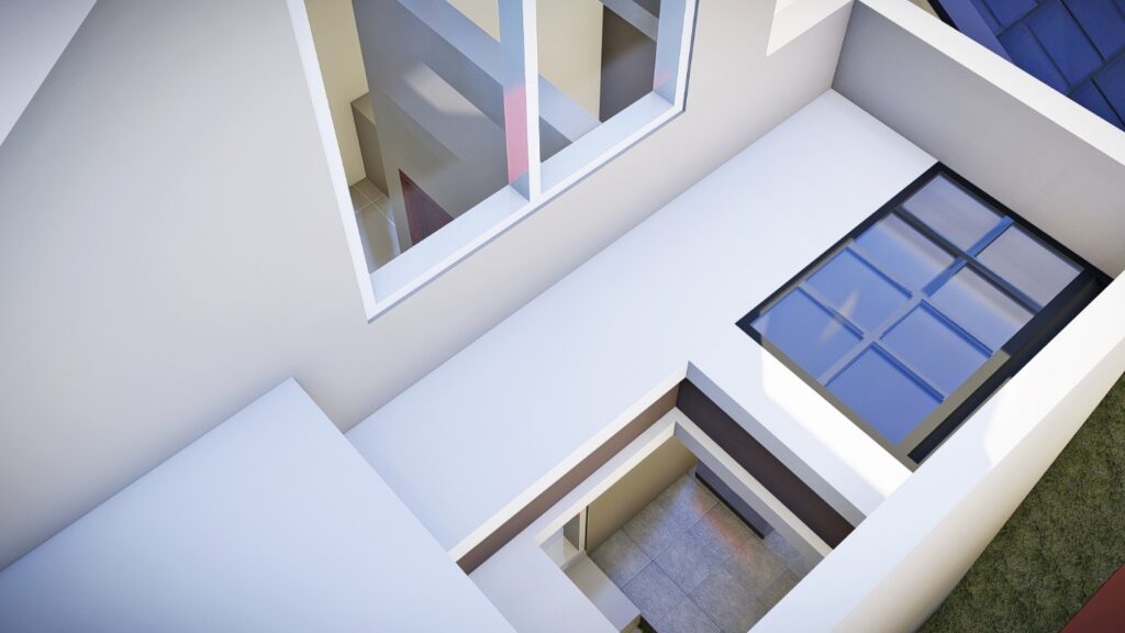 Untuk pintu dan jendela menggunakan material kayu dengan finishing duco. Sedangkan Pintu Utama menggunakan kayu jati dengan finishing melamin warna salak brown. Desain jendela pada rumah ini dominan berukuran besar dan lebar, hal ini dimaksudkan agar udara dan sinar matahari dapat dengan mudah masuk kedalam rumah dan sirkulasi udara didalam rumah bisa lebih baik. Dengan begitu, tingkat kelembaban didalam rumah akan selalu terjaga dan pencahayaan alami juga mampu memberi nilai lebih secara estetika. Pada bagian Ruang cuci jemur, atap menggunakan kaca biasa ketebalan 8mm dengan rangka besi hollow galvanis.