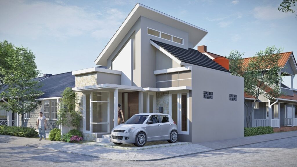 Mrs. Medy’s Home Design is located in Bekasi, West Java. Located on the hook, but the client requested that the front facade of the house only leads to one side of the road. The land area is ± 60 m2, while the building area is ± 47 m2. The interior of the house is divided into several room functions, including: living room, kitchen, bathroom, laundry room, warehouse and bedroom. For the outside of the building there are only Carports and Parks. The layout of this room is very simple. Between the living room and the kitchen is given a partition to maintain the privacy of the residents of the house. At the front and rear, there are windows to regulate air circulation so that the temperature in the room remains cool and not hot.