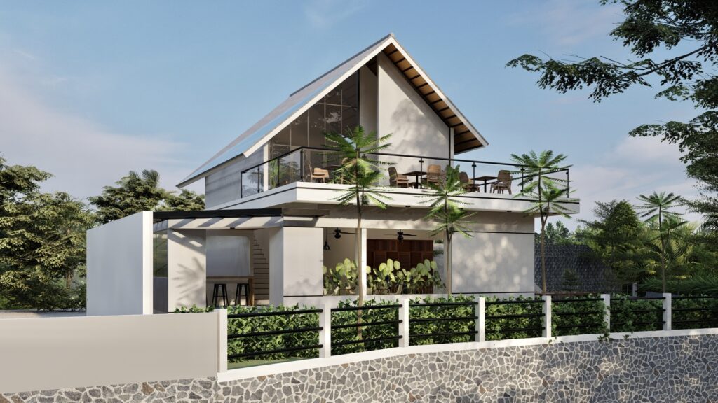 Cafe menjadi tempat favorit bagi banyak orang untuk bersantai, bekerja, atau berkumpul dengan teman-teman. Dalam proyek desain cafe 2 lantai kali ini, kami mengusung konsep modern tropis yang akan memberikan fresh dan memikat bagi para pengunjung. Dengan area outdoor yang terbuka dan area indoor yang nyaman, cafe ini merupakan tempat yang ideal untuk menikmati suasana segar alam sambil menikmati hidangan.